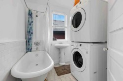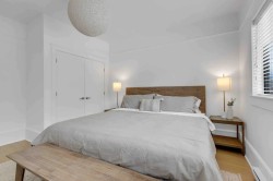 Live comfortably in this fully furnished 2-bedroom, 2-bathroom upper-level suite, spanning 1500 Sqft. Nestled in the sought-after Kitsilano neighbourhood of Vancouver, this charming character home boasts brand new furnishings and a thoughtful layout designed with you in mind. Step inside and be greeted by gleaming hardwood and tile floors, creating a warm and inviting ambiance throughout. The suite is thoughtfully appointed with modern comforts, including stainless steel appliances and convenient in-suite laundry facilities. Rest and recharge in the luxurious king-size bed and enjoy a designated office area for your professional needs. Step out onto one of the two private balconies, perfect for soaking up the fresh air. Situated in an unbeatable location
