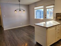 Excellent investment or holding property that has recently been updated and features new zoning with lane access. This nicely updated rancher offers wheelchair accessibility, 3 bedrooms (2 on the main floor and 1 bedroom in the basement), and 2 full bathrooms. Interior updates include a newer furnace, hot water tank, laminated floors, interior doors, fresh paint, new window coverings, a refinished gas fireplace, and a washer and dryer. The stylish kitchen boasts granite countertops, a tiled backsplash, newer stainless steel appliances, and a double undermount sink. The main bedroom provides ample closet space and features a barn door leading to an adjacent ensuite, which includes double marble sinks, a tiled floor, and a walk-in tiled shower. The property is situated in a quiet neighborhood and features a beautifully landscaped, fenced backyard with a flagstone patio, a garden area, a 12.5’ x 8’ rear shed for storage, and a covered seating area perfect for summer barbecues. A large double carport and driveway offer plenty of parking, with convenient access from a rear laneway. This location is ideal, close to the Vernon hospital, downtown, recreation facilities, restaurants, parks, and numerous amenities.