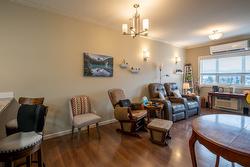 Rarely available, bright top floor unit with beautiful city and peek-a-boo lake views. This spacious 2 bdrm/2bath suite offers an open floor plan with a u-shaped kitchen complete with 4 stainless appliances. A deck is located off the the living room where you can sit outside & enjoy the views. The master can easily accommodate a king bed, has a walk-thru closet that connects to the xtra lrg ensuite bath w/walk-in shower. The second bedroom is a decent size and the main bath does offer a tub for the occasional soak. Secure u/g parking + a downtown location just a few minutes to all shopping! Catherine Gardens is a non-profit society dedicated to providing affordable 55+ housing with a carefree lifestyle & peace of mind of a newer building. No responsibility to sit on a strata council & a maintenance/occupancy fee that covers TAXES, water, sewer, garbage, snow removal, hot water, electrical/plumbing maintenance & repairs, appliance repairs/replacement & landscaping. You pay content/deductible insurance, hydro, cable & telephone only! No property purchase tax & 1 Year Schubert Center Membership. Building is pet friendly so bring your dog or cat!