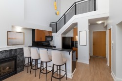 LIVE THE DOWNTOWN LIFESTYLE AT “THE VOGUE” Where heritage charm meets modern convenience.This 2006 heritage conversion set in the heart of Old Town Victoria truly has it all.2 bd, 2 bth, 2 level penthouse loft blends contemporary design with striking old-growth timbers, creating one-of-a-kind living experience.Main living is open concept with impressive 21 ft ceilings & cozy gas F/P.The stylish kit features lots of cupboard space, stone c/tops, S/S appl, gas range & secret pantry!4 pce bth with cheater to 2nd bd overlooking the old buildings.Spacious balcony with gas hook up, perfect for entertaining, enjoy views towards the bridge & distant Sooke Hills.Upper level offers huge primary open loft style bd with lovely views, build-in wardrobes & 3 pce bth.Bring your furry friends, u/ground parking, bike & storage locker, fab common rooftop deck!This sought-after building is within the historic d/town core for Fan Tan Alley, Market Square, shopping/dining/entertainment!Car-less lifestyle!
