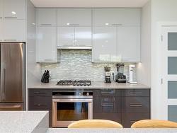 Welcome to The Wade—a sophisticated, 2021-built low-rise steel and concrete building that combines modern design with lasting quality. This top-floor corner unit offers over 750 sqft. of bright, thoughtfully designed living space with large windows & serene park views. Open-concept layout features a gourmet kitchen with quartz countertops, stainless steel appliances including a gas cooktop, two toned full-height modern cabinetry & large island with an eating bar—perfect for entertaining. Primary bedroom includes walk-in closet and ensuite with heated tile floor. Additional highlights include in-suite laundry, second full bathroom with heated tile floors, private balcony with a gas BBQ hookup and abundant natural light throughout. Enjoy access to a stunning rooftop terrace with sweeping city views plus your own garden plot and private peaceful courtyard. Well run strata welcomes 2 dogs (any size) with access to secure underground parking, separate storage locker & bike room.