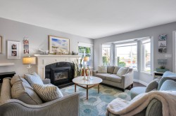 This gorgeous, well-maintained, 4 bed plus den, 3 full bath home, with ocean views from the 2nd floor and roof-top deck, is the perfect coastal retreat! Beautifully landscaped private back yard,with a lush garden,gazebo and Koi pond is your own little oasis to relax and enjoy, yet large enough to entertain friends and family. Lovely, manicured, south-facing front yard, and the big beautiful windows and skylights throughout the home let in tons of natural light. A gorgeously renovated 2nd floor has access to the wrap-around deck from the fam. room and primary bdrm.The perfect spot for your morning coffee and evening sunsets! Or, climb the indoor ladder to the rooftop deck for SPECTACULAR panoramic views! Close to schools, shopping, dining and White Rock beach!