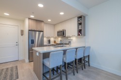 Amazing 1 bedroom & large den condo with a view of the OCEAN in White Rock. Beachborough is a gorgeous and impeccably maintained building, built with beautiful exposed west coast wood work, combining nature and local resources with sustainable eco-efficient features. This unit is immaculate and ready for you to call home. Features include ductless air conditioning, gas stove, gas BBQ hookup, upgraded closets, window coverings and much more. The large deck is the perfect place to enjoy a beverage and look out at the sunset over the ocean with the island mountains in the background. The location can't be beat with the White Rock strip just down the hill, shops on the ground level, and all other amenities within walking distance. 2 large dogs OK. This is one you don't want to miss.