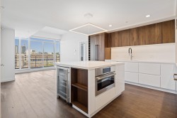 Limited time 5% BUYER'S CREDIT ON OUR FINAL HOMES! Take in the beautiful sunset and ocean views from this perfectly laid out West facing home with THE EXTRA LARGE 150SF patio. This home has ample storage, incl. a walk-in closet in the second bedroom and side-by-side laundry. Contemporary interiors feature engineered H/W flooring and porcelain tiles with NuHeat in the primary ensuite, A/C, modern lighting, complete closet/drawer organizers. Two parking stalls, one private EV charger, storage, and access to a 3000 SF multi-purpose space designed to provide lifestyle conveniences you will use every day. Walking distance to the East Beach, town center, schools, parks and many eateries and amenities. Easy living w/Concierge on-site and a guest suite for friends and family. View by appointment!