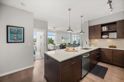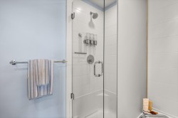 WINTER STREET! White Rock’s best-kept secret with an OCEAN VIEW! This top-floor unit is showered with an abundance of natural light from the large windows & high ceilings. Open living & dining area with access to a large south-facing balcony for enjoying the sunrise in the morning or sunset in the evening. 2 bedrooms, 2 full bathrooms PLUS a den outfitted with built-ins for the ultimate work from home space. Nicely appointed kitchen with stainless steel appliances including a gas stove & an island that accommodates 4 people. The generous primary bedroom has an ensuite with a separate shower plus a tub & a spacious walk-in closet. Live close to everything & want for nothing as you stroll to the beach, restaurants, shopping & more. Pets allowed with restrictions, non-smoking building.