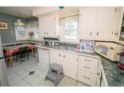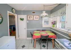 'INCOME POTENTIAL'. WONDERFUL package with spacious 3 bedroom main level and lower unit with two bedrooms! Lovely home with ceramic and hardwood floors throughout the main level, bright white eat-in kitchen w double sink, ceramic counter top. Large living room and dining room area. Unique hallway built-ins of drawers and shelves, full bath and a bonus room behind garage! Downstairs unit offers 2 good size bedrooms with new egress windows, large living room, kitchen, dining room and bath. Up rents for $1,730 a month and Basement for $1,200.00. Heat and lights included. In house laundry facilities. To top it off, Newer METAL ROOF! For a rental property vendors can accommodate a quick closing however if purchaser wishes to live in home, upstairs tenant requires 2 month notice to vacate. Down tenant (as per rentalsman) 3 months. Both tenants on month to month lease.