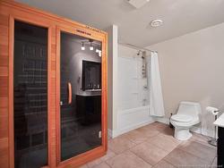 LOCATION, LOCATION on 1.5 acres with expansive mountain views overlooking the valley to be fully appreciated from the tall south facing windows. The luxury of a 3-car attached garage with 10' ceilings and just outside the city in a preferred area, is a bonus. The roomy entryway has a 2 Pc BR and in-floor heating, drying up any wet footwear. The kitchen has an eat-in nook, tall cupboards with glass doors, a wall oven, wine cooler and a 13' long granite counter that any cook would love. The kitchen opens into the dining room with a propane fireplace, a patio door leading to the deck offering a sunrise and a sunset view. The dining room opens into the living room which has built-ins surrounding a wood fireplace with a hidden wood pass-through eliminating any mess. The other side of the dining room leads into an office/sitting room then into the main bedroom ensuite which has an 8' long enclosed built-in for storage, a walk-in closet with laundry and a bathroom with a jetted 5 1/2' tub. The downstairs has a large cozy living area with a walkout patio door, a beautiful view, large propane fireplace, 4 Pc bathroom with sauna and 2 BRs. The extra large storage room has an area ready to be finished as a full kitchen, making the downstairs a luxury apartment or an Airbnb for added income. Roomy, cozy and easy to heat with 8" insulation on all outside walls - cool in the summer and warm in the winter. Located just 8 minutes from Crandall University and exit to TCH.