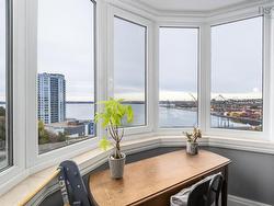 Enjoy stunning harbour views from every window in this bright 3-bedroom, 2-bath condo! The open-concept living and dining area features an electric fireplace and walkout to a private balcony, while the well-planned kitchen flows seamlessly into the main space – perfect for entertaining or unwinding at home. The primary suite offers a walk-in closet and ensuite, and the third bedroom, with its electric fireplace and custom built-ins, makes an ideal home office or den. Thoughtful details include an in-unit laundry room and a vent opening designed for easy connection of a portable AC unit. With a prime location just minutes from downtown Halifax, Bayers Lake, and all amenities, this condo combines comfort, style, and convenience with unbeatable views of the harbour, ships, and city lights.