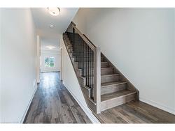 Welcome to this exceptionally crafted 3-bedroom, 3-bathroom freehold townhouse, located in one of Paris' most desirable communities. Thoughtfully upgraded with over $20,000 in premium enhancements. Step inside to a bright and airy main floor featuring 9 ft ceilings and engineered hardwood flooring, creating a seamless flow throughout the living and dining spaces. The open-concept gourmet kitchen boasts upgraded cabinetry, a spacious eat-in design, and stylish finishes ideal for both everyday living and entertaining.A striking dark-stained oak staircase with sleek metal pickets adds a sophisticated architectural touch, leading you to the private upper level. The luxurious primary suite features a spa-like glass shower, generous closet space, and an abundance of natural light. Two additional bedrooms offer versatility for families, guests, or a home office.