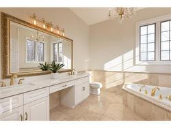 Discover this exceptional custom executive bungalow with southern exposure positioned at the end of a peaceful cul-de-sac on a 1/3 acre lot,where luxury meets tranquility backing onto a wooded ravine connecting the Bruce Trail and all its beauty.This stunning 3+1 bdrm,3.5 bath residence spans 6,327 sq ft of meticulously designed living space,perfectly situated in Burlington’s desirable Escarpment neighbourhood.Natural light cascades throughout the home,enhanced by impressive 10-12ft ceilings on the main level and over 9 ½-12ft ceilings on the lower level.Open concept Great Room features hardwood flooring and a cozy gas f/p flowing seamlessly into the gourmet kitchen.The kitchen showcases pristine cabinetry,a large island and breakfast area w/ convenient access to the outdoor balcony overlooking your backyard.The perfect places for casual entertaining.Elegant formal dining room accommodates larger gatherings,while a separate main-floor office provides a quiet workspace.The oversized primary bdrm offers a private retreat with gas f/p,spacious w/i closet,and updated 5 pc ensuite. 2 additional bedrooms, 4 pc bath,and powder room complete the main level along with the practical elements of a laundry room with direct garage access.The finished LL expands living options w/ rec room complete with pool table area,media room,and a gym area with direct access to the yard. Guest bedroom is located next to a 3-pc bath.The Utility room w/ 12ft ceiling provides ample storage,maximize functionality.Step outside to discover a private retreat w/ manicured gardens featuring an inground saltwater pool & extensive entertaining areas accessible through 2 separate walkouts from the LL.A double oversize garage provides space for a car storage lift system.This prime location offers convenient access to highways,shopping,walking trails,& golf, creating the perfect blend of suburban serenity and urban convenience.Freshly paint thru/out ensures move-in readiness.LUXURY CERTIFIED