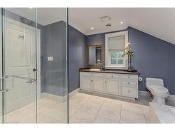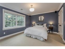 Rare opportunity to own a magical property across from the water with a double wide lot of 120 ft frontage. This South Burlington gem with pool is a character-filled 2 Storey retreat with an oasis yard for any nature lover. Just steps from the lake and minutes to the golf, country club and LaSalle Park. With 3,886 sqft of total living space, it presents a unique opportunity for growing families seeking space, lifestyle, and timeless charm in one of the city’s most coveted locations. Enjoy the serenity of a quiet residential setting while being only minutes from schools, parks, shops, dining, and all major amenities. From the moment you arrive, the curb appeal is undeniable—mature trees, professional landscaping, an interlock walkway, and a wraparound porch set the tone for the warmth inside. The open-concept main floor showcases hardwood throughout, anchored by a chef’s kitchen blending modern finishes with classic design. Featuring a spacious island with breakfast bar and wine storage, granite countertops, custom cabinetry, SS appliances, and a cozy window seat, it flows into the dining area & coffee bar with seamless access to the yard. A formal living room with fireplace and a sunken family room with coffered ceilings, wall-to-wall windows, gas fireplace, and walkout make this a true gathering hub. Upstairs, the expansive primary suite is a private retreat with dual walk-in closets and a spa-like 5pc ensuite complete with soaker tub, dual vanity, & oversized glass shower. Two additional bedrooms each boast their own luxurious full ensuites, while the convenience of upper-level laundry adds everyday ease. The fully finished walkout basement extends the living space with a spacious rec room, games room, and an additional full bath. Outside, the lifestyle continues in a fully fenced backyard with ample green space for kids and pets, interlock patio, built-in BBQ area, shed, and a concrete gunite pool—perfect for summer entertaining.