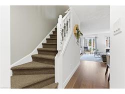 Bright, updated end unit featuring an open-concept main floor with hardwood floors and newer windows. Kitchen offers stainless steel appliances, ample storage, and patio doors to a private patio. Upper level has two bedrooms and a 4-piece bath. Finished lower level includes a family room, 2-piece bath, and large laundry/storage area. Overlooks green space with no neighbors beside for added privacy. Move-in ready!