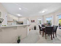 Welcome to this beautifully maintained second-storey, one-level living, town home featuring 2 spacious bedrooms plus 2 full bathrooms. Primary bedroom with walk-in closet and a 4 piece ensuite (tub/shower combo). Second bedroom w/3 piece ensuite (walk-in shower). Numerous windows throughout flood this open concept living area in a cheerful, natural, warm atmosphere. Spacious living room/dining room. Lovely kitchen offers a breakfast bar, pantry, as well as generous extra storage! South facing private balcony (gardener’s delight) is conveniently accessible from dining room plus primary bedroom - extending your living space! Also, enjoy your own personal in suite laundry/utility room! Exclusive-use garage, with an additional parking space and private storage room. Near all amenities! Walk to: waterfront, parks, hospital, Mapleview mall, public transit, schools etc. Easy access to the QEW (Toronto & Niagara bound), 403 and 407. Proudly owned home, meticulously maintained by the same PET FREE & SMOKE FREE owner for over 27 years. This is a special home ready for you! Possession date flexible.