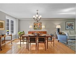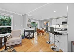 Looking for the sweet spot between “too much house” and “not enough space”? This townhome in Barrington Square might be your Goldilocks moment. Set at the back of the complex for privacy, you’ll find a double garage and driveway… so yes, you can both park inside! Inside, the owner’s meticulous care shows at every turn: hardwood floors, crown moulding, updated kitchen with stainless appliances including induction stove. Walk-out onto the patio perfect for summer dinners under the electric awning while you cook on the gas line BBQ. Upstairs, the primary suite feels like a retreat with vaulted ceilings, walk-in closet and large spa-like ensuite. A second bedroom with its own ensuite access, plus a third bedroom currently used as a den, gives you flexibility without the fuss. Laundry is conveniently upstairs too! The finished basement adds even more living space with a third full bath but doesn’t sacrifice the great storage space either. Lawn and snow care are included so your weekends are free for Central Park strolls or Peach Coffee Co. coffee runs.