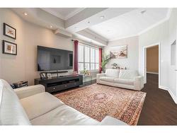 Experience true penthouse luxury at the Haven building in Burlington's coveted Orchard community! This Spectacular 1-bedroom plus den, 2-bathroom suite redefines condo living with 1,209 sq ft of sun-drenched space soaring 10-foot ceilings that must be seen to be appreciated. Originally a two-bedroom plan, this unit has been brilliantly redesigned to create a massive, open-concept living room perfect for entertaining or enjoying the airy, light-filled ambiance. The updated chef's kitchen is the heart of the home, featuring gleaming quartz countertops, a large island, and premium stainless steel appliances. Unwind in your private primary retreat with a large walk-in closet and a spa-like ensuite bath. The versatile den makes an ideal home office or guest space. Enjoy morning coffee on your private balcony and the incredible convenience of a storage locker located on the same floor. The Haven offers an unbeatable lifestyle. Head up to the spectacular rooftop terrace with BBQs, a putting green, and panoramic views of the escarpment. The building also includes a gym, a party room, and an energy-efficient geothermal heating and cooling system for low-cost, year-round comfort.