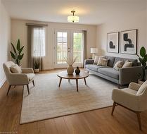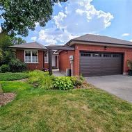 Savannah Oaks end-unit bungalow offering 1,372 sq. ft. of bright, open-concept living in a quiet, highly sought-after community. This beautifully maintained Intego model features newer hardwood flooring in the living and dining areas, and a spacious kitchen with large windows overlooking the lush front gardens. The living room provides a garden door walk-out to a private back deck and patio, complemented by a charming front courtyard—ideal for outdoor relaxation or entertaining. This 2 bedroom, 3 bathroom home includes a partially finished basement with a rec room, games room, den/office, workshop, and ample storage space, plus convenient access to the double car garage. Located close to parks, scenic trails, shopping, and amenities. Images are for reference purposes only. Photos are virtually staged.
