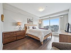 Welcome to RiverHouse, one of downtown Guelph's most sought-after condominium residences. This stylish turnkey suite pairs luxury finishes with an urban lifestyle just steps from the GO station, Sleeman Centre, Speed River and the city's best shops, dining, and downtown amenities. Inside, the open-concept layout is bright and inviting, with large windows and a private balcony showcasing panoramic city views. The kitchen features rich espresso cabinetry, granite countertops, stainless steel appliances, and an island with bar seating that flows seamlessly into the living and dining area. The living room offers elegant crown moulding, a fireplace feature, and sliding doors to the balcony - an ideal space for morning coffee or relaxing above the city. Both bedrooms are generously sized, with the primary suite offering floor-to-ceiling windows, a walk-in closet, and a spa-like ensuite with a glass-enclosed shower and stone vanity. A second full bathroom with a frameless glass shower serves guests and the secondary bedroom. Additional highlights include in-suite laundry, 2 underground parking spaces with an EV rough-in set up for future installation and a storage locker. RiverHouse provides a refined lifestyle with amenities such as a fitness centre, party room equipped with a bar/lounge, large outdoor terrace, and guest suite, all within a secure and well-managed building. A rare opportunity to experience upscale condominium living in the heart of Guelph's vibrant downtown core. All furniture can be purchased, see realtor remarks for further details.