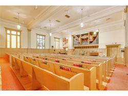 First Pilgrim United Church is a well maintained Beaux Arts institutional property prominently located in Hamilton’s downtown core. Constructed in 1912, the building showcases an impressive architectural presence with its symmetrical facade, six full height Corinthian columns, and classic stone detailing. Offering nearly 20,000 sq ft of usable space across the main level mezzanine and finished basement, the property provides a highly functional and versatile layout.The bright and spacious sanctuary was substantially updated as part of extensive building wide renovations completed in 1984. It features beautiful woodwork, stained glass elements, an organ loft, and an upper balcony with additional seating and an integrated audio visual booth overlooking the main hall. The building includes a full gymnasium and hall, a commercial style kitchen, multiple offices, reception areas, meeting rooms, and a functioning elevator servicing the main and lower level. Most of the current expenses are covered by a portion of the lower level and various other rooms currently leased, generating approximately $6,900 in monthly income.Positioned along a major downtown corridor, the property offers excellent visibility and easy access to public transportation. With its generous square footage, strong architectural character, and well maintained condition, this landmark building is suited for continued institutional use or a wide range of future redevelopment possibilities.