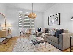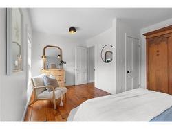 From the moment you step through the front door of 40 Emerald Street North, you’re greeted by timeless elegance and modern comfort in perfect harmony. The spacious foyer welcomes you with a full closet, solid wood Victorian doors adorned with vintage hardware, and recently refinished original pine floors that flow throughout the home. High ceilings crowned with ornate medallions, lofty baseboards, and exposed brick create a warm, historic backdrop. The kitchen is a showpiece. Bright white cabinetry, stainless steel appliances, polished wood island, farmer’s sink, herringbone backsplash, wainscoting, and a striking exposed brick wall blend beautifully with the home’s century-old soul. Spacious principal rooms and tall windows fill the main level with light. Convenient powder room finishes the main floor. Wood stairs lead you up to three bedrooms, each with original doors, trim, hardware, and floors, along with a modern, sparkling bath. Everywhere you look, the best of old-world craftsmanship and thoughtful updates unite in style. The fully finished basement offers incredible flexibility. A private in-law suite, teenage retreat, or guest space featuring a living area that can double as a bedroom, a sleek 3-piece bath, kitchenette, and direct laundry access. Step outside to a fully fenced backyard, perfect for relaxing or entertaining, and a rare detached garage for parking or storage. Updates incl. all wiring and plumbing (2019), 50 year shingles on main roof (2020), all new windows and limestone sills (2019), furnace (2019), water heater (2020). All of this in a walkable downtown location, just steps to shops, restaurants, parks, and transit. 40 Emerald Street North delivers heritage charm, modern updates, and unbeatable convenience. It’s a real gem in the heart of the city.