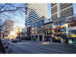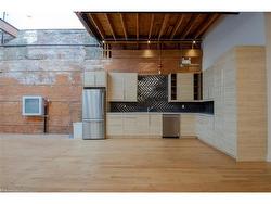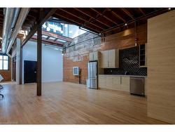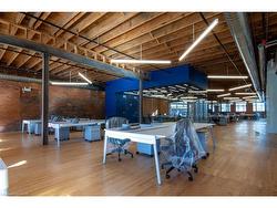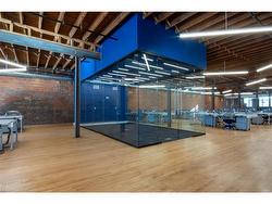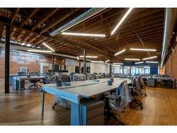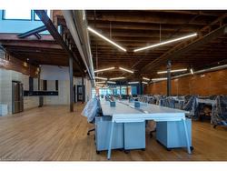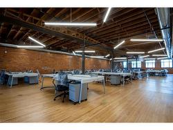 Stunning, turn-key penthouse office space in the heart of Hamilton’s central business district! This beautifully rebuilt building blends historic character with modern infrastructure, creating one of the most impressive office environments in the city. Exposed stone and brick walls, steel posts, and gleaming hardwood floors are complemented by glass-enclosed offices and meeting rooms for a sophisticated, contemporary feel. A spacious kitchen and seating area are located toward the rear of the unit, adjacent to a unique “yoga / conference room” featuring a roll-up garage door. Need a breath of fresh air? Step out onto the shared rooftop terrace for a break or informal meeting. Just steps from everything — courthouses, banks, Restaurant Row, transit, shopping, and more — this exceptional space is ideal for any company looking for an office that stands out for its quality, design, and employee experience. Note: Furniture pictured not included in listing offering.