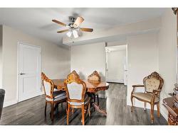 Step inside this rare two-level condo that feels more like a townhouse. On the main floor, you’re welcomed into a bright and functional layout finished with laminate flooring. The kitchen features ceramic tile flooring and a granite backsplash, offering both durability and style. From here, the space flows into the dining area and cozy family room—perfect for entertaining or everyday living. Just off the family room, open the patio doors to your private balcony, freshly painted and upgraded with electrical. It’s the perfect spot to enjoy summer evenings, morning coffee, or breathtaking sunsets over greenspace. Comfort is a priority on this level, thanks to a ductless AC/heat pump system that keeps the space cool in summer and warm in winter.Upstairs, you’ll find vinyl flooring across the top landing, then spacious three bedrooms with breathtaking views, paired with a full bathroom that offers ample storage. Two additional AC units in the bedrooms ensure the upper level stays cool during warmer months. Upgraded closet doors, including full mirrored doors on the main level, and custom shelving throughout add both function and modern flair.Outside your front door, the location is ideal. With quick highway access, it’s perfect for commuters, and for those who enjoy the outdoors, nearby walking trails invite peaceful strolls through the neighbourhood.The building itself is rich with amenities: a covered basketball court with nets, a community garden, bike storage, party room, children’s playground, and BBQs for residents. Pet-friendly and designed with open-air sky streets, the community has a welcoming, townhome feel.For added convenience, this unit includes one exclusive parking spot and a storage locker—making it as practical as it is unique.With its rare upgrades, thoughtful improvements, and two-story design, this condo is truly one of a kind.