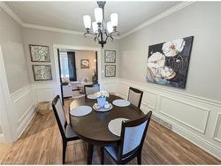 From the moment you step onto the inviting large porch and into this stunning rental, you’ll know this is a place to be proud of. This spacious 4+ bedroom home has so much to offer! Upon entry, you’re greeted by a convenient double-door coat closet. The main floor boasts a generous living room with an electric fireplace and large windows, creating a bright and cozy atmosphere. The space seamlessly flows into the dining room, which can be separated with elegant black pocket doors. The kitchen is warm and inviting, featuring rich brown cabinetry with ample storage and space for a charming bistro set. A door off the kitchen leads to a private backyard, set to be finished with lush grass in the spring. This expansive outdoor space includes a deck perfect for your furniture, 12 x 12 stones, a gardening area, and a shed for added storage. A 2-piece powder room completes the main level.Upstairs, you’ll find four sizable bedrooms, each comfortably accommodating queen-size furniture, along with a 4-piece bathroom featuring a tub and shower. The third level is a showstopper, offering a fully renovated in-law suite or teenager’s haven. This upper floor includes a modern kitchen with ample counter and cupboard space, an eating area, a 3-piece bathroom with a shower, and a large living area that can be divided into a bedroom space. It even has its own private entrance from the backyard, making it ideal for added privacy.Finished with luxury laminate flooring, stylish fixtures, and modern handrails, this home is thoughtfully designed for comfort and style. Additional features include basement laundry, ample storage, and included parking. Perfect for a large family seeking space and privacy, this home truly has it all. Come see it for yourself!
