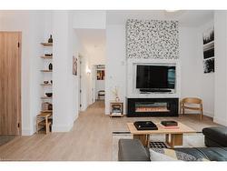Welcome to this lovely lower penthouse at the iconic Royal Connaught, abeautifully preserved piece of Hamilton’s history right in the heart of downtown.This pristine, sun-filled unit offers soaring 13-foot ceilings, a brightopen-concept layout, and southwest views. The modern kitchen is perfect forentertaining, featuring a waterfall quartz island, matching quartz countertops,and custom glass backsplash. The spacious living area includes a custom featurewall with electric fireplace. Enjoy added comfort and convenience with automatedblinds throughout, a double vanity in the large 4-piece bath, a customglass-enclosed tub/shower, in-suite laundry, and a walk-in closet in the primarybedroom. This unit also comes with an owned locker and an underground parkingspot. Located just steps to everything you love about city living including trendycafes, shops, art galleries, restaurants, and the vibrant energy of James Street.You'll also love the easy access to hospital services, transit, and GO Stationconnections. If you're ready for a blend of luxury, history, and urbanconvenience, this spectacular condo might just be your perfect match.