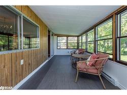Great retirement living in the largest landlease community in Ontario and just south of Barrie. Conveniences galore within minutes. A small Mall on location with a Restaurant, variety store, pharmacy, hair dresser. A lovely home with a nice layout and great for a large dining room set so you can continue all your entertaining. Living room is large with big windows to let all the light in. A galley kitchen has lots of cupboards and your laundry is at the very end of the room. There are 1 1/2 bathrooms, two bedrooms, and a Sunroom. The outside of the home has had a peaked roof installed along with the siding changed to vinyl. Enjoy your afternoon or evening sitting on the front covered porch or on the back deck. So many activities within the community, you can be as busy or as quiet as you like. On going dances, darts, billards, kareoke, bingo, two outdoor heated salt water pools and the list goes on. Golf carts allowed ! New Fees 855.00 new taxes 155.30