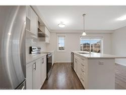 Welcome to 110 Ian Ormston Drive a true gem in the highly sought-after Doon Southcommunity. This impressive corner-unit townhouse with a premium lot, walkoutbasement, and double-car garage offers just under 2,000 sq. ft. of beautifullyfinished living space, ideal for couples, young families, and busy professionals.The MAIN level features a bright foyer and a versatile den/home office/gym, withdirect walkout access to the backyard, perfect for work, fitness, or relaxation. Onthe second floor, you'll find an inviting open-concept living area highlighted by9-foot ceilings, abundant natural light, and a spacious modern kitchen with smartlayout, ample counter space, upgraded appliances, and a cozy breakfast area. Walkout to the oversized deck, ideal for hosting gatherings with friends and family. Asa corner unit, the home benefits from additional windows, creating a bright andairy dining and living space throughout. Carpet-free flooring and upgraded hardwoodstairs elevate the home's modern appeal. The upper level offers a comfortablefamily room and three generously sized, well-ventilated bedrooms, each with amplecloset space, along with beautifully upgraded bathrooms. Additional highlightsinclude, Double-wide private driveway providing excellent parking space, 200 AMPelectrical panel EV-ready, Walkout basement with potential for futurecustomization, Proximity to the Grand River, scenic trails, top-rated schools, andnumerous amenities, Quick and convenient access to Highway 401, perfect forcommuters. Don't miss your chance to call this exceptional Doon South residenceyour new home! Virtual staged photos.