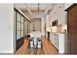 Welcome Home to the historic Kaufman Lofts in the heart of the Innovation District! This stunning 2-bedroom loft perfectly blends urban style with contemporary comfort. Featuring 14’ ceilings, luxury vinyl plank flooring, and custom barn doors, this open-concept space exudes character and sophistication. The modern kitchen showcases extended-height cabinetry, a large working island with seating, quartz countertops, and stainless steel appliances, ideal for both everyday living and entertaining. Enjoy an abundance of natural light through oversized windows and take advantage of custom built-in storage in each bedroom, plus the convenience of in-suite laundry. Residents of Kaufman Lofts enjoy access to premium amenities including a rooftop patio with community BBQ and dining area, a meeting/party room, bicycle storage, and visitor parking. Located just steps to the new Google Office, Sun Life and Manulife head offices, as well as restaurants, shops, and LRT transit, this loft offers the ultimate downtown lifestyle.