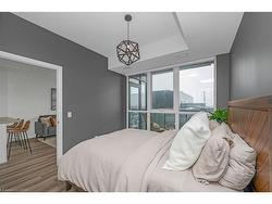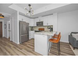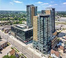 Upgraded 1 Bed+ Den, 1 Bath condo with 48 sq’ balcony. This modern open concept unit features a spacious living room with motorized privacy blinds and a bedroom with blackout blinds for extra comfort. The kitchen has 36” upgraded cabinets, premium vinyl flooring, sleek granite countertops, and a stylish glass backsplash. Whirlpool stainless steel appliances, including a mounted freezer, complete the space. The extra large bathroom has a high-pressure chrome shower head for a spa-like experience. Amenities include a pet run, landscaped BBQ terrace, outdoor pool with accessible elevator and shower, fitness room, yoga area, sports court with basketball net, and an entertainment room with a catering kitchen. The condo is within walking distance to Google, Deloitte, KPMG, D2L, Communitech, McMaster School of Medicine, the University of Waterloo School of Pharmacy, Victoria Park, and downtown with its cafes, restaurants, and shops. It also offers easy access to hospitals, ION LRT, bus stops, Go Train, the Expressway, and the future transit hub