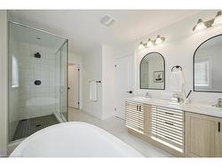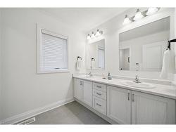 Discover your dream home in the heart of Kitchener's new, family-friendly Trussler West community. Nestled on a quiet street, this exquisite 2,382 sq.ft. residence blends tasteful modern finishes with timeless craftsmanship, creating a truly magnificent living space. From the moment you arrive, the home impresses with its classic brick facade and a double-car garage offering parking for four vehicles. Step into a bright, open-concept main level where 9-foot ceilings & continuous engineered hardwood floors establish a modern, airy atmosphere right from the foyer. The living and dining areas, illuminated by pot lights and chandeliers, create the perfect ambiance for both entertaining guests and quiet family evenings. The heart of the home is the stunning modern kitchen, a chef's delight featuring a large quartz centre island,custom backsplash,extended cabinetry, and stainless steel appliances. From here, slide open the doors to a walk-out deck. A main-floor office provides a quiet space for work or study. Upstairs, the primary bedroom serves as a personal sanctuary,a large walk-in closet, and a luxurious ensuite. Unwind in the elegant soaker tub or the spacious glass shower, and appreciate the privacy of a separate water closet and the convenience of double sinks. Three additional generous bedrooms share a well-appointed 5-piece main bath, thoughtfully designed with a water closet and double sinks to streamline morning routines. The home's potential continues with a large, unfinished basement-a blank canvas awaiting your personal touch. This Net Zero home is future-ready, with rough-ins for solar panels, an electric vehicle charger, and a basement bathroom and bar. Enjoy the perfect balance of tranquil nature, with the trails of Trussler Woods nearby, and commuter convenience, with easy access to Highways 7/8 & the 401. You're also just minutes from major shopping hubs like the Sunrise Shopping Centre. This is more than a house-it's the home you've been waiting for.