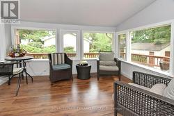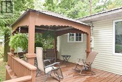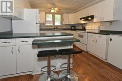 FOUR SEASON HOME - Fully Furnished 2 Bedroom / 2 Bath Bungalow in a quiet location just 2 minutes from Lake Huron. Enter into the spacious living room with an inviting fire place. Kitchen includes white cabinets, lots of counter space and a breakfast bar. Appliances included. The dining room is large enough to accommodate a large table and hutch. Bright family room with another fireplace, lots of windows and sliders to the front deck and Gazebo. Four season sunroom leads to the rear wraparound deck with a "lakeview" Hot Tub. Two decent sized bedrooms. Laundry located in the en suite. Second bathroom (4PC) includes a tub/shower. Laminate floors throughout. Propane furnace (2022). Insulated crawl space. Beautiful yard with perennial gardens. Shed with hydro includes all of the tools and lawnmower. Metal roof. Security systems with outdoor cameras. This home would suit someone looking to retire comfortably and inexpensively. Land lease will be $2600 for the first year and will increase $100/year until it reaches $3000. Band fees approx $2250/year. No conventional mortgages available for leased land. Buyers must have current police checks and proof of insurance before closing. Home cannot be rented out. Seller will have septic pumped out and inspected to meet band requirements before closing. Close to golf, restaurants, shopping and of course the stunning beaches along Lake Huron. (id:7525)
