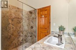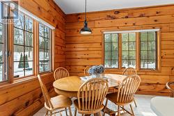 Seize this opportunity to own a piece of history in beautiful Port Franks! This picturesque log cabin is nestled on a mature treed lot and features all the conveniences of modern day living. The generous main floor boasts a cozy dining/sitting room with exposed beams, hardwood flooring and gas fireplace; double height family room with log interior walls, vaulted ceilings, sky lights, grand wooden open riser staircase, and gas fireplace; eat in kitchen with updated appliances (2019) and island with breakfast bar; updated bathroom and large foyer. The upper level boasts full views of the family room with updated main bathroom including tiled shower with glass enclosure, double sinks and stand alone soaker tub and 3 generous bedrooms including primary with vaulted ceilings, double closets and sky light. The entire home is surrounded by wrap around porches and decks with stunning landscaping and hot tub all with privacy from the mature trees. The expansive treed lot spans 198 ft front by 247ft depth. Large triple car detached garage is perfect for parking or hobbiest. Outdoor features include generous driveway with room for RV/boat parking, fire pit, irrigation system (2020), and 2 sand points which provide water for the lawn and gardens. Luxury vinyl flooring (2022), painted (2022), electrical for hot tub, and electrical for generator. Wonderful location being walking distance to 3 marinas, community centre, playground, trails and library and in close proximity to private Port Franks beach, golf coarse and restaurants. (id:7525)