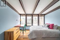 Welcome to 6165 19th Ave., Markham a truly unique country estate offering the best of both worlds: ultimate privacy and serene natural surroundings, all within minutes to modern conveniences. This warm and inviting 4-bedroom, 4-bathroom bungalow inspired by Frank Lloyd Wrights signature style is thoughtfully integrated into the landscape. Floor-to-ceiling windows along the back of the home flood the interior with natural light and provide breathtaking views of the wooded rolling lot and creek. The recently updated kitchen features poured-in-place concrete countertops and rich wood cabinetry. A built-in wall oven and a spacious walk-in pantry make it both beautiful and functional. And the kitchen boasts stunning views of the property including wildlife such as deer, foxes, turkeys, and a great heron. The great room is a showstopper, with soaring 20+ ft ceilings, exposed wooden beams and a natural granite stone wood-burning fireplace perfect for family gatherings or quiet romantic evenings in. The primary suite is a tranquil retreat, complete with a steam feature and jetted soaking tub in the ensuite and a wood burning fireplace. The home is fully wired with CAT-5 making it ideal for modern living. With two wood-burning fireplaces and an additional gas fireplace, warmth and comfort are never far away. Outside, the detached three-car garage with workshop and loft is a dream for hobbyists or those seeking extra space. With utilities already in place, the loft offers untapped potential and can be transformed into a games room, home office, or garden suite. The oversized patio and deck are perfect for entertaining including summer nights around the built-in gas firepit. Natural gas service, a rare feature for a country property, adds value and efficiency. Whether you're seeking a forever family home or a weekend escape, this one-of-a-kind property delivers charm, character, and lifestyle. Dont miss your chance to own this exceptional gem in Markham's countryside. (id:27)