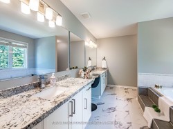 This stunning home and its quiet prime neighbourhood are a True Gift for you and your family. Your dream home with all the possibilities it holds, awaits in the heart of Milton's most desirable Beaty community. This detached home blends over 4,500 sqft of luxury, comfort, and stylish living spaces in every detail. Offering unmatched and exceptional community living located near top rated schools, shops, plazas, restaurants, Hwys, GO Station, parks, trails, and more! The beautifully upgraded exterior boasts a modern double garage with sleek black doors, a charming covered porch, and a tasteful light brick finish with elegant grey accents give the home a contemporary look. Step inside through elegant glass front door into a Grand Foyer with soaring ceilings, where a stunning designer Chandelier cascades gracefully from above, creating an unforgettable first impression! The main floor features a separate living and dining rooms, offering defined spaces for formal and special gatherings. While the open-concept family room flows smoothly into the upgraded gourmet kitchen and a large breakfast area with direct access to your own private backyard oasis backing onto a picturesque stretch of lush greenery, this calm space sets the scene for peaceful evenings where you can unwind on the patio or fire up the BBQ for unforgettable outdoor entertaining. As you make your way up the elegant curved staircase with rich brown wooden steps, natural light floods the upper hallway creating a bright and uplifting ambiance. This smooth transition leads you to 5 spacious bedrooms; feature a generously sized primary bedroom with a large walk-in closet and a luxurious 6-piece ensuite, along with 4 additional well-appointed bedrooms, jack and jill 2nd bathroom, and a 3rd bathroom offering comfort for the family. The finished basement offers versatility with upgraded flooring and a 5th bathroom. Carpet free and smooth ceilings throughout the home! Advanced water softener and filtration system!