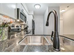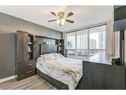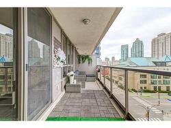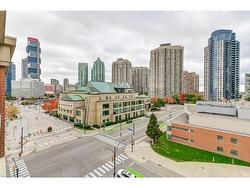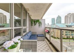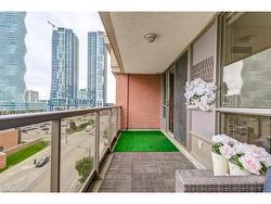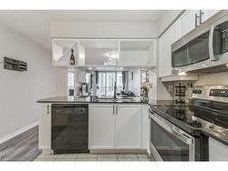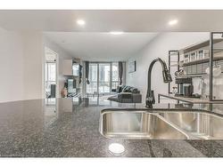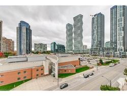 Step into the rhythm of downtown Mississauga with this beautifully maintained 1 bedroom + den, 2 bath suite featuring a bright open layout and fantastic flow throughout. The kitchen offers granite countertops with a breakfast bar and ample cabinetry, opening to a spacious living and dining area with walkout to a large balcony and floor-to-ceiling windows framing city views. Enjoy updated engineered laminate flooring, a private ensuite in the primary bedroom, and a den perfect for a home office or guest space. Convenient in-suite laundry with stacked washer/dryer and plenty of storage with hallway closets and pantries. Live at the very heart of it all, City Centre surrounded by vibrant culture, dining, and entertainment. Walk to Celebration Square, Square One, theatres, cafes, and parks all just outside your door. World-class amenities include an indoor pool, hot tub beneath a chandelier, sauna, fitness and weight rooms, golf simulator, theatre room, party rooms, and a cozy lounge/library space to unwind or connect. This isn't just a condo it's life at the centre of everything.