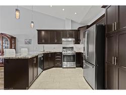 Stunning semi-detached townhome with double car garage in Niagara Falls! As you enter, you'll be greeted by elegant tile flooring in the foyer while the first bedroom on the right features beautiful engineered hardwood flooring and double closets. The kitchen showcases warm cabinetry accented by white subway tile backsplash, stainless steel appliances, granite countertops, and centre island with breakfast bar. The open-concept living and dining area is highlighted by vaulted ceilings, a cozy gas fireplace, and durable luxury vinyl plank flooring, creating an inviting space to relax or entertain. Sliding patio doors lead to a private deck and small grass area - perfect for pets! Enjoy maintenance-free, low fee condo living as snow removal and lawn care are both taken care of for you! The convenience continues with a main level laundry room located near the double car garage that offers direct access into the home. Overlooking the backyard, the spacious primary bedroom offers a walk-in closet and a beautifully finished ensuite with a walk-in shower. The fully finished basement extends your living space. The vinyl flooring continues through the family room with second gas fireplace and the 3rd bedroom with walk-in closet. There's also a 4 piece bath with a tub/shower combined plus a dedicated workshop area-ideal for hobbies or extra storage. This home truly combines comfort, style, and easy living in one perfect package!