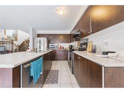 Welcome to this beautifully maintained end-unit townhouse, ideally located just 200 feet from you scenic trail access into the Heartland Forest Conservation Area. Enjoy nature at your doorstep while living in one of the largest townhome layouts in the community. The main floor boasts an open-concept kitchen with a breakfast bar, perfect for entertaining, a generous living room, and a bright dinette with patio doors that lead to the private rear yard. Upstairs, you'll find an impressively large primary suite featuring a walk-in closet and a spa-like ensuite complete with a glass-door shower and separate soaker tub. Don't miss this rare opportunity to own a spacious, nature connected home in a sought-after neighborhood!