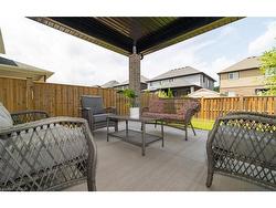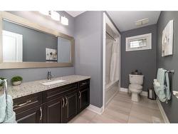 Welcome to this executive 4-bedroom, 4-bathroom detached 2-storey home, built in 2016 and located in the prestigious Fernwood Estates subdivision in Niagara Falls. Step inside to find rich, dark hardwood flooring throughout both the main and second floors, with no broadloom anywhere in the home. Nine-foot smooth ceilings and pot lights on the main level create a bright, upscale feel, while the impressive open-to-above foyer sets the tone for the rest of the home. The gourmet kitchen is a chef's dream, featuring granite countertops, a stylish backsplash, a breakfast bar, and stainless steel appliances. Porcelain tiles highlight the foyer and spacious laundry room, which also provides a walkout to the double-car garage. Upstairs, the large primary suite offers a luxurious 5-piece ensuite bath and a walk-in closet. Three additional well-sized bedrooms share a third 4-piece bathroom. The finished lower level, accessible via a separate walk-up through the garage, offers vinyl flooring, a large recreation/family room, a potential fifth bedroom, a full 3-piece bathroom, and a cold room for extra storage. The exterior is equally impressive, featuring a stone and stucco finish, an exposed aggregate driveway with parking for four vehicles, and a covered concrete patio ideal for outdoor entertaining. Built with style and functionality in mind, this 2016 home combines elegance, comfort, and premium finishes throughout.