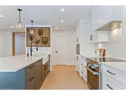 Located in Old Oakville, just steps from the GO station and Whole Foods, and a short stroll to boutique downtown shops, this 3-bedroom, 3.5-bath corner suite offers the perfect balance of urban convenience and peaceful neighborhood living.Nearly 3,000 sq ft of sunlight-filled space features wide plank white oak floors, a Chervin-crafted kitchen with new Miele appliances, and two private terraces for morning coffee or evening relaxation. A custom bookcase door reveals a hidden bonus room—ideal as a home office, screening room, or creative studio.The primary suite is a private retreat with its own terrace, sitting nook, walk-in closet, and spa-level marble ensuite. Two additional bedrooms with ensuites, full laundry with storage, and curated modern finishes complete the home.Building amenities include an indoor pool, fitness center, hobby room, party space, two premium parking spots, and two lockers—all within a calm, community-minded setting.