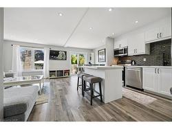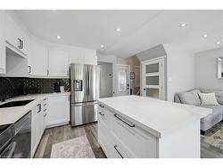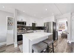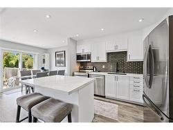 Welcome to beautiful North Oakville in the family friendly River Oaks neighborhood! Step inside this incredibly renovated TURN KEY freehold townhome. With almost 1800 square feet of total living space, this property features a recently finished lower level, 3 bedrooms with a rare 3 full bathrooms and parking for 3 cars! This open concept replaced eat in kitchen with quartz counters, stainless steel appliances and glass backsplash, spacious living and dining room all with replaced floors and an incredible main floor bonus den/office or even main floor bedroom (can be easily convertible back to a single garage). Head out back to a flagstone patio and large shed, all in a very rare 133 foot fully fenced lot. Upstairs offers a primary bedroom with a newly finished (rare for this layout) 4pc ensuite bathroom and a custom wall closet system, two more bright spacious bedrooms both with double closets and freshly renovated 3 pc main bathroom. Newly finished basement has an open recreation room/playroom and a new 3pc bathroom and laundry area. Talk about move in ready! Perfect growing family home or downsizing, close to all amenities, restaurants, highway access and all that Oakville has to offer! Don’t miss out on this beautiful townhome.