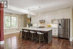A remarkable lifestyle awaits in Oakvilles highly sought-after West Oakville community, where every convenience is just steps away. This exquisite custom raised bungaloft, redesigned in 2016 by Keeren Designs, backs directly onto the scenic Donovan Bailey Trail & is only a 3-minute walk to the Queen Elizabeth Park Community & Cultural Centre. Enjoy nearby Bronte Harbour, Lake Ontario, waterfront parks, & Bronte Villages shops & restaurants, all just minutes away, with quick commuter access to Bronte GO Station & the QEW/403. Showcasing undeniable curb appeal, this luxury home features a stucco facade with accent shutters, stone steps leading to a covered entry with columns & iron railings, interlocking stone walkways, professional landscaping with mature trees, a 9-zone irrigation system, & exterior cameras. The private backyard retreat offers upper & lower stone patios, gardens with armour stone accents, evergreens, & direct trail access. Inside, the residence boasts 2+3 bedrooms, 2.5 bathrooms, & a versatile loft perfect as a bedroom, home office, or studio. The 2016 transformation added a gourmet kitchen, wide-plank hardwood, designer tiles, custom built-ins, deep trim, built-in speakers, & expandable Control4 smart home automation. Designed for comfort & entertaining, the open-concept main floor offers 9 ceilings, family room with gas fireplace, spacious dining room, & chefs kitchen with custom cabinetry, quartz counters, oversized island with seating for 6, high-end appliances, & a breakfast area with walkout to the backyard. The primary suite showcases 2 walk-in closets & a spa-inspired 4-piece ensuite with soaker tub & oversized glass shower. The finished lower level includes a large recreation room, 3 bright bedrooms, 3-piece bath with heated floor & glass shower, oversized laundry, & abundant storage. Upgrades include furnace, HRV, roof shingles (2016), & recently, some main floor windows updated, & addition of a custom 8 solid wood front entry door. (id:7525)