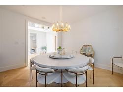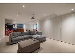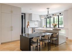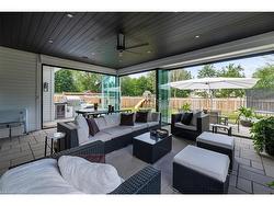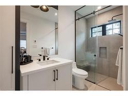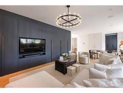 Situated on a premium 75' x 150' lot in the heart of West Oakville, this custom-built residence offers 3,625 square feet of thoughtfully curated living space. Completed in 2020 by Scott Ryan Design Build, the home showcases timeless architectural design, superior craftsmanship, and a floor plan tailored for modern family life. The main floor impresses from the moment you step inside. Herringbone-patterned engineered hardwood floors, soaring ceiling heights, and custom millwork by Misani Custom Design create a warm yet elegant backdrop. A dedicated office at the front of the home provides a quiet workspace, while the formal dining room with adjacent servery is perfect for entertaining. The heart of the home is the expansive kitchen where custom cabinetry, premium appliances, and a large island flow seamlessly into the great room. A thoughtfully designed mudroom with built-ins and side entry adds everyday functionality. Upstairs, the primary suite is a private retreat featuring a spacious, custom-designed walk-in closet and a luxurious ensuite with double vanity, freestanding soaker tub, and oversized shower. The two additional bedrooms include private ensuites and custom built-ins, offering privacy and comfort for family and guests alike. A fully outfitted laundry room finishes off this level. The fully finished lower level offers nearly 1,900 square feet of additional space with radiant in-floor heating and polished concrete floors. A large recreation area, fourth bedroom, full bathroom with steam shower, second laundry and ample storage make this level both versatile and functional. Step outside to a backyard oasis designed for year-round enjoyment. A covered rear porch with glass enclosure acts as a true four-season extension of the home, while the built-in BBQ, hot tub, and landscaped grounds create an idyllic setting for outdoor entertaining. An exceptional offering in West Oakville, this home delivers style, substance, and space in equal measure.
