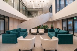 Brand new, never lived-in Minto North Oak condo at Trafalgar & Dundas-featuring a rare pond view! This bright and efficient 1-bedroom + large den, 1-bath suite offers a sleek open layout with laminate floors throughout. Enjoy a modern kitchen with quartz counters and full-size stainless steel appliances, plus a brand-new front-load washer/dryer. Includes 1 underground parking space and complimentary internet.Live in luxury with resort-style amenities: a fully equipped gym, yoga room, sauna, party room, BBQ terrace, pool table lounge, kids' playroom, pet wash station, and business/meeting rooms. Brand-new window coverings already installed.Located in a prime Oakville neighborhood, just minutes from shopping, scenic trails, schools, and transit. Perfect for young professionals or couples looking for comfort, style, and convenience. Move-in ready!