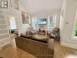 Set along the wooded edge of East Lake Shores, 50 Hollow Lane offers shade, privacy, and a quieter setting while still being close to the resort amenities. Mornings start with filtered light through the trees and birdsong overhead, and evenings on the screened-in porch feel like a calm retreat after a day at the lake or exploring The County.Located in The Hollows, one of the resort's most desired areas, this Picton model is one of the larger floor plans at East Lake Shores. It features two bedrooms, two bathrooms, vaulted ceilings, and an open kitchen, dining, and living area. A spacious loft adds extra sleeping space or storage. The screened-in porch faces the treeline, offering privacy while remaining a short walk to the pools, courts, playground, and waterfront. The cottage comes furnished and includes two-car parking, landscaped grounds, and a storage shed.East Lake Shores spans 80 acres of parkland along East Lake with nearly 1,500 feet of shoreline. Seasonal amenities include two pools, tennis, basketball, bocce and pickleball courts, a gym, dog park, playground, walking trails, canoes, kayaks, paddleboards, and a lakeside patio for sunset views. Weekly activities-yoga, aquafit, kids' crafts, and live music-create a friendly, inclusive atmosphere.Just beyond the gates is everything people love about Prince Edward County: Sandbanks Provincial Park, wineries, breweries, farm stands, markets, and great local dining. This is a vacant land condominium, so you own both the cottage and the land. Monthly condo fees of $663.03 include water, sewer, internet, cable, grounds maintenance, waste removal, management, and use of all amenities. Owners may join the on-site rental program or manage their own bookings to help offset costs.50 Hollow Lane offers a budget-friendly cottage in a wooded, more private setting with full access to the amenities and easygoing County lifestyle that make East Lake Shores so appealing. (id:7525)