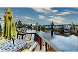 Visit REALTOR® website for additional information.Welcome to a rare offering in the sought-after Mini Lakes community—perfect for those seeking a quiet, low-maintenance lifestyle in a secure, gated neighborhood. This well-maintained year-round bungalow features stunning, uninterrupted lake views—an uncommon find here. Inside, the bright living room with a bay window flows into a spacious eat-in kitchen. With two bedrooms, a full bath, and in-home laundry, the layout is both comfortable and functional. Enjoy outdoor living on the large deck overlooking the water—ideal for relaxing or entertaining. Recent updates include the furnace, A/C, roof, and flooring. Mini Lakes offers a golf-cart-friendly lifestyle with a clubhouse, pool, and regular social events—just minutes from Hwy 401, shopping, and dining.
