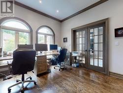Welcome to 5 Trilogy Court an executive residence nestled on a quiet, sought-after cul-de-sac in the heart of South Richvale, one of Richmond Hills most prestigious neighborhoods. This stately 4+1 bedroom home offers timeless elegance, custom finishes, and a resort-like backyard complete with a sparkling swimming pool and hot tub. Step through the grand foyer into a thoughtfully designed layout with refined living spaces ideal for both everyday comfort and upscale entertaining. Main-floor library, a warm, inviting retreat featuring custom floor-to-ceiling built-in bookcases and a two-way fireplace shared with the adjoining dinning room, creating a seamless atmosphere of sophistication and warmth. The gourmet kitchen is a chefs dream, complete with Quartz countertops, high-end appliances, and ample cabinetry opening seamlessly to a bright breakfast area and expansive family room overlooking the private backyard oasis. Formal living and dining rooms provide generous space for entertaining and family gatherings. Upstairs, four spacious bedrooms await, including a luxurious primary suite with a walk-in closet and a spacious laundry room. The finished basement includes a guest/nanny suite, media area, sauna and additional entertaining space. Step outside to enjoy your private paradise with a professionally landscaped yard and in-ground swimming pool, ideal for summer relaxation and entertaining Located near top-rated schools, boutiques, and golf courses, this home combines luxury, location, and lifestyle. (id:7525)