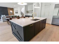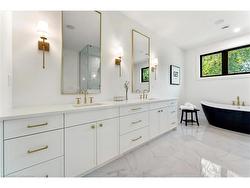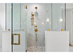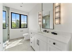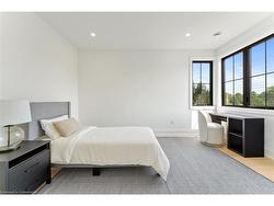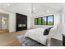 Experience the pinnacle of modern living at 81 Doans Ridge Road - an interior design gem offering 3,025 sq ft of refined space on a 60' x 200' lot. From the moment you step inside, the open-concept main floor sets the tone with soaring 9' ceilings, rich engineered hardwood, custom white oak wall paneling, in-ceiling speakers, and sun-filled windows. The chef's kitchen is a show stopper with a 48" Thermador gas range, 36" Thermador fridge, 8' island, and walk-in pantry-perfect for hosting. A main-floor office provides the ideal work from home setup. Step onto the 295 sq ft covered deck and soak in tranquil views. Upstairs, two bedrooms each offer private 3 piece ensuites and walk-in closets, while the 650 sq ft primary suite is a true retreat with vaulted ceilings, a fireplace, spa inspired ensuite, and walk-in closet. The basement features over 8' ceilings, a roughed in bath, and a garage to basement stairwell. Located minutes from the Welland canal, trails and major highways, this home delivers luxury, lifestyle, and location in one extraordinary package.