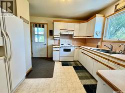 Welcome to 603 2nd Street NE in the north end of Preeceville SK! This move in ready home is perfect for many different walks of life. Driving up to the property you will have two options for off street parking. The front of the home has a paved driveway and the back of the property has a gravel driveway that leads to a fully insulated and heated double car garage (24x26). Take the boardwalk to the main entrance of the home (north door) featuring a covered deck area. The north entrance to the home takes you to a cozy porch area to put your outerwear away. A few steps over will take you to the east facing kitchen featuring an ample amount of cupboards and counter space. Included in the kitchen will be the fridge and stove with hood fan. Enjoy a perfect view from the kitchen to the dining area and large living room. Down the hall will take you to the 2 large bedrooms with good closet space. The 4 piece bathroom completes the main floor living space. The basement is partially finished and features a den area that is currently used as a bedroom (no window). The 3 piece bathroom completes the basement living space. Basement also includes laundry area with washer and dryer included. Lots of room for storage in the laundry room area plus in the utility and cold rooms. The utility room houses the gas furnace and gas water heater. The 70 amp panel box and water softener (owned) are located at the bottom of the stairs. The exterior of the home is vinyl siding with updated triple pane windows. The double car garage features metal siding/roofing, a separate electrical panel box with 220 power, and openers with remotes. Enjoy outdoor living on the wrap around deck that faces north and east. Preeceville is a full service town 60 minutes from Yorkton SK with year round outdoor activities and public school K-12. Services includes Health Center, Grocery and Hardware Stores, Gas Stations, Restaurants, Churches, and a number of small specialty businesses. Property is not for rent. (id:7525)